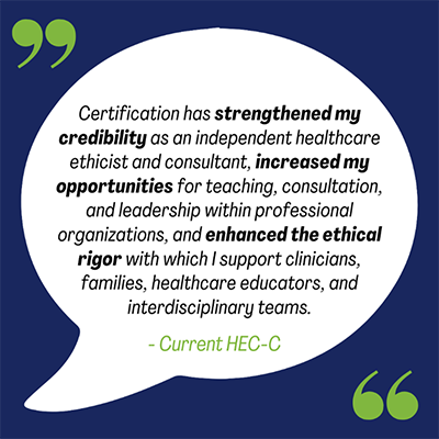 Apply for the HEC certification exam to endorse your knowledge of key concepts in healthcare ethics and affirms your expertise, competence, and skillset.